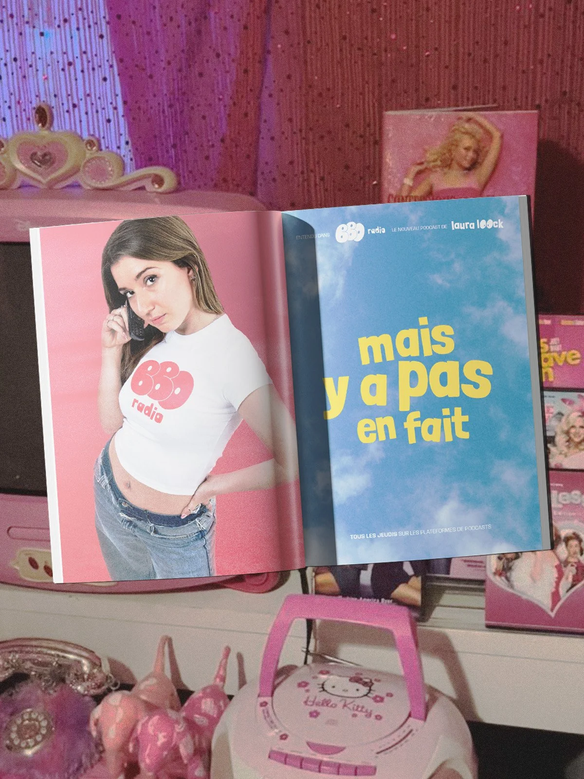 Après l'avoir photographiée quelques mois auparavant, Laura a fait appel à alur studio pour créer la direction artistique de son podcast. Son souhait : une esthétique décalée, girly, et à son image. Pour cela, elle souhaitait s'inspirer de certaines références des années 2000, notamment pour les photos et les poses. Pour contraster ce look "années 2000", nous avons proposé un branding fun, coloré et décalé.