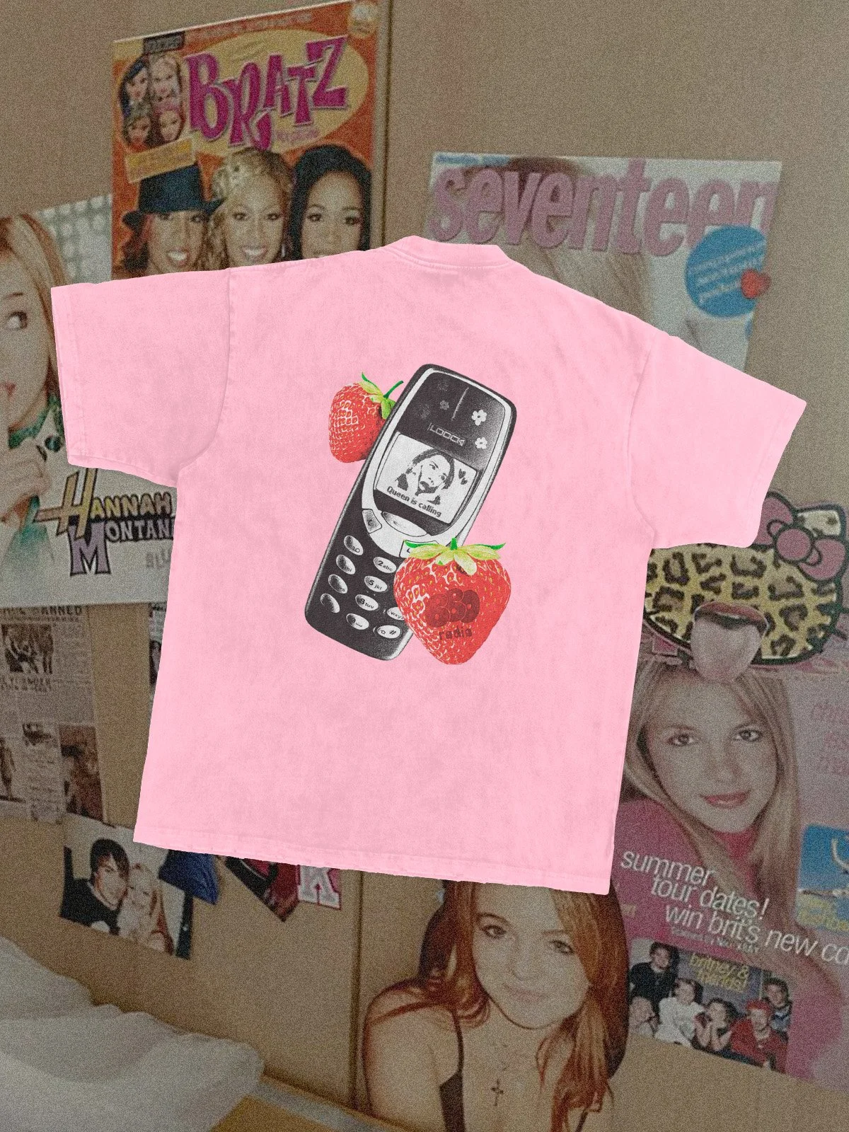 Emblématique couleur de l’univers Y2K, l’utilisation du rose était une obligation. Pour apporter un peu de chaleur et de contraste, on retrouve également du jaune.