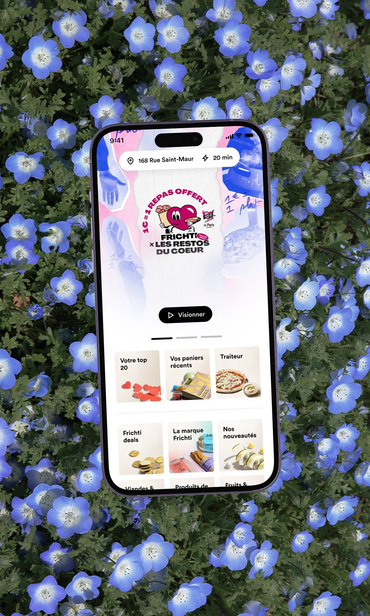 Identité visuelle du module de don des Restos du Coeur sur l’app Frichti