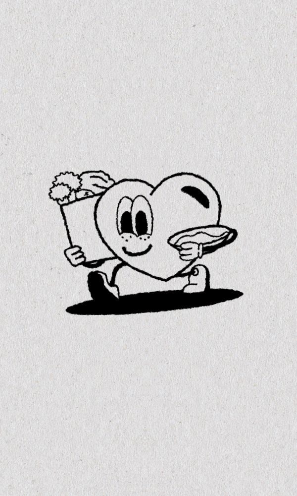 L’idée de créer une mascotte est rapidement venue. Cela permettait de donner une image sympathique et affective au module de don. Une mascotte en forme de cœur, ça attire l’attention et ça fait directement écho au logo des Restos.