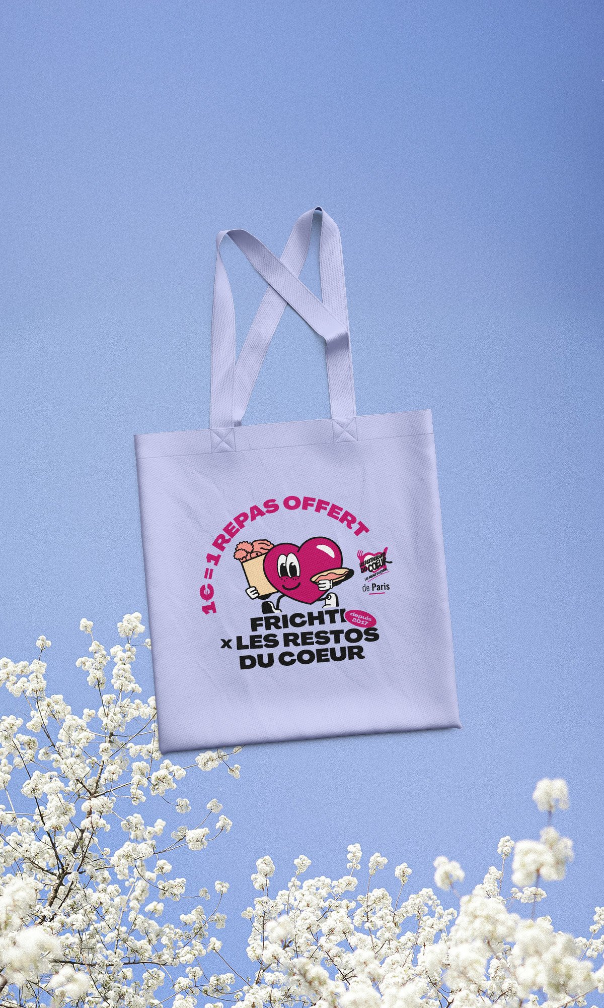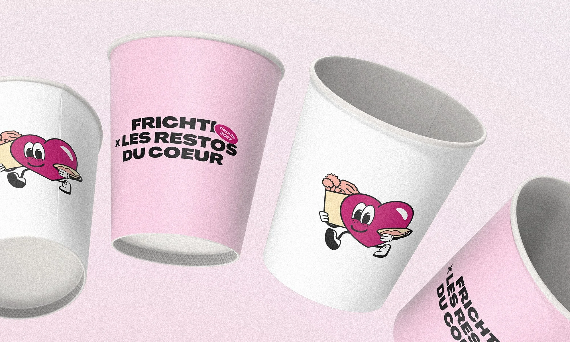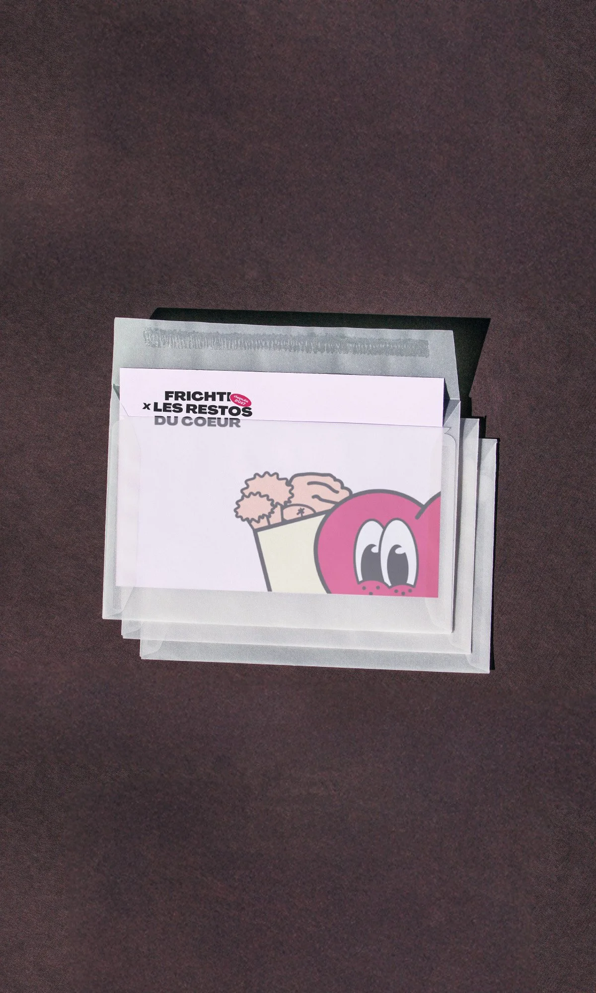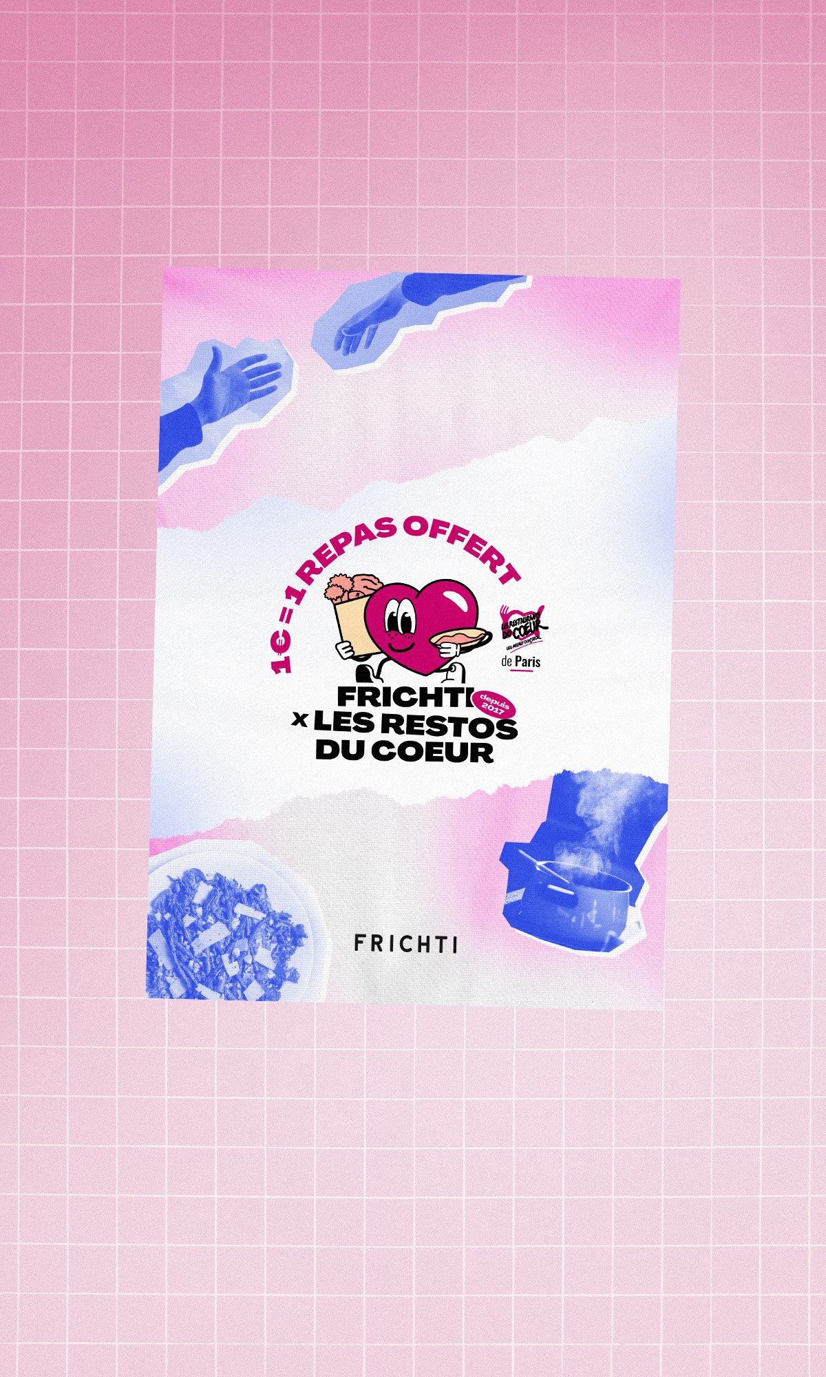 Associée au logo de l’asso et à la typo iconique Agrandir de Frichti (font par Alex Slobzheninov), la mascotte a permis de donner un coup de projecteur au module de don des Restos.