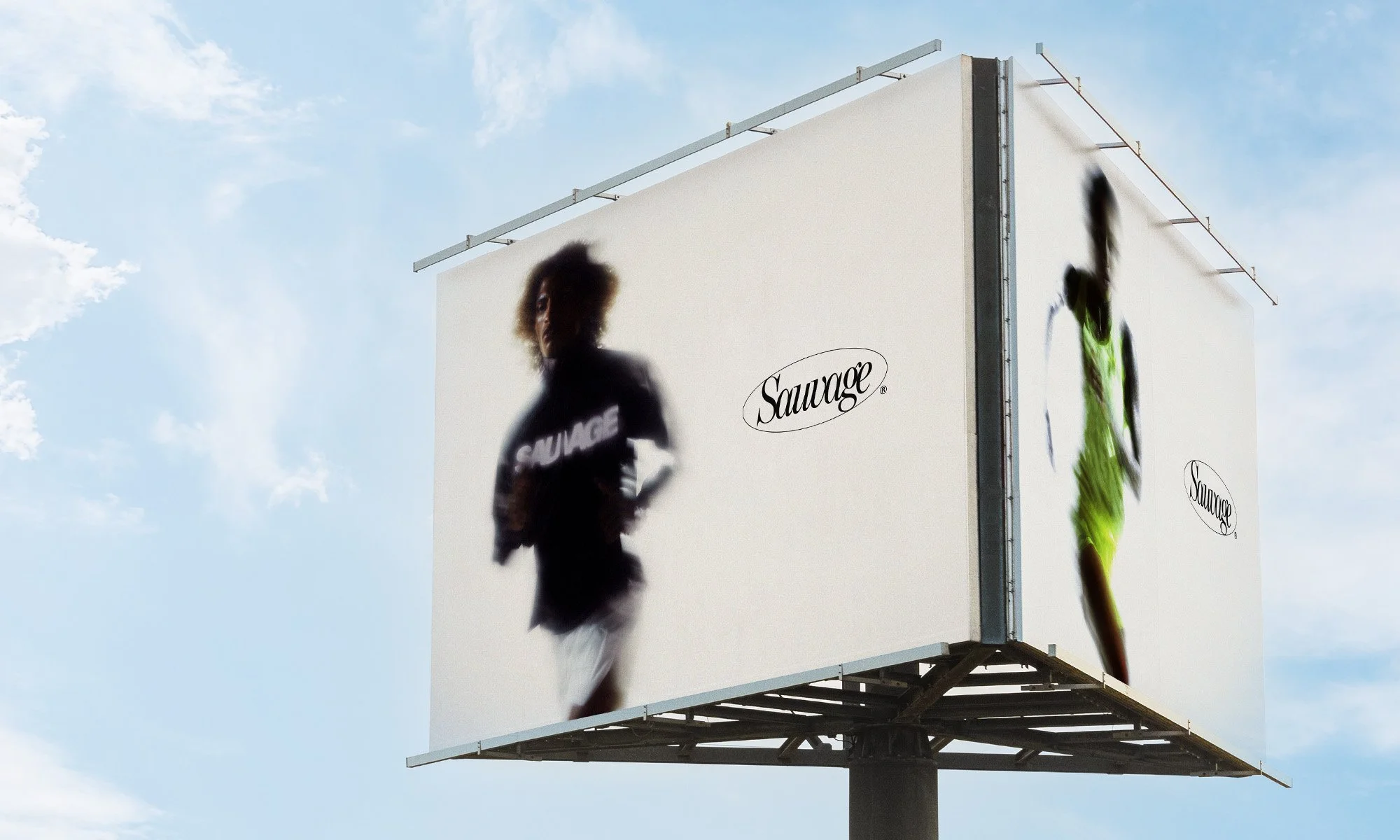 La large palette de couleurs fait ressortir la dynamique de la tech au service du sport. Elle permet de déployer l’identité de Sauvage sur de nombreux supports sans la rendre répétitive.